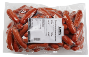 Meget lækre og velsmagende små pølser til brunchbuffeten. Pølserne har slagterkvalitet med et højt indhold af svinekød og er fremstillet af nøje udvalgte råvarer. Brug dem også gerne i pølsehorn til din frokostbuffet.