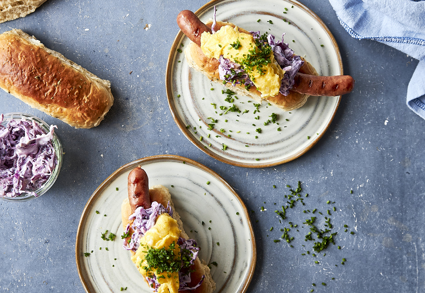 Ingen hotdog uden brød. Og her er det vigtigt at tage højde for, hvilken pølse du har valgt. Har du valgt en frankfurter, er det nemlig en god ide at vælge et større brød, så pølsen ikke flækker brødet, når du samler din hotdog. Ellers er det bare at vælge det brød, du bedst kan lide. Du kan også eksperimentere med at bruge et ciabattabrød, en baguette eller små tortillapandekager.