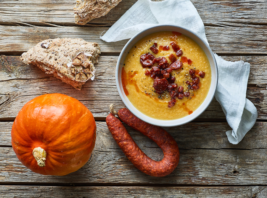 Til Halloween er der mange sjove og (u)hyggelige opskrifter at lave for både børn og voksne. I vores store opskriftsunivers finder du flere forskellige Halloween opskrifter med pølse, som nemt kan laves til børnefesten, men som også fint kan spises i hverdagene. Prøv vores farlige pølsemumier, søde fyldte peberfrugter eller græskarsuppe med kålpølse. Vi er sikre på, at de vil blive et hit til Halloween festen.