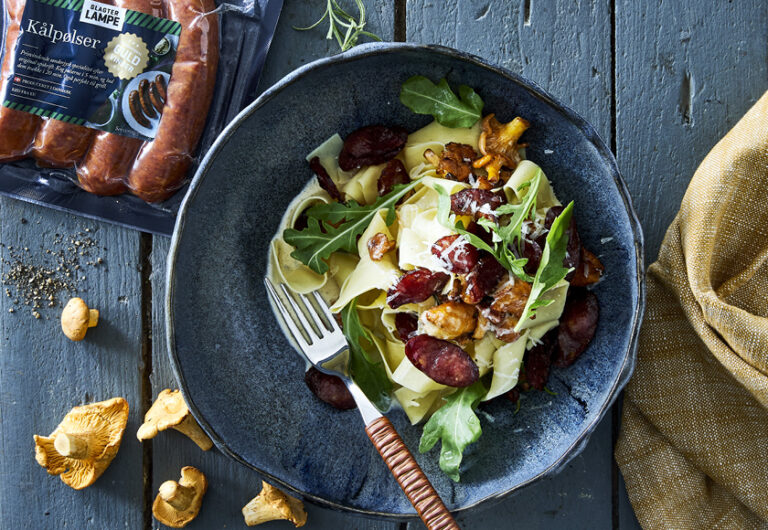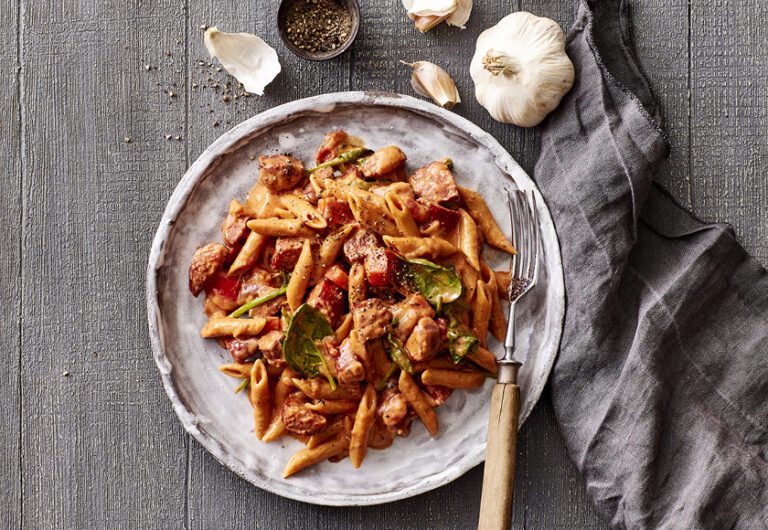 One pot pasta med chorizo og spinat