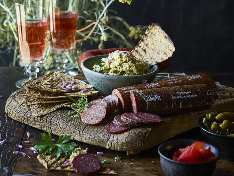- Læg en spiseskefuld feta creme på den grillede kartoffel og top op med en lækker grillet Slagter Frankfurter.