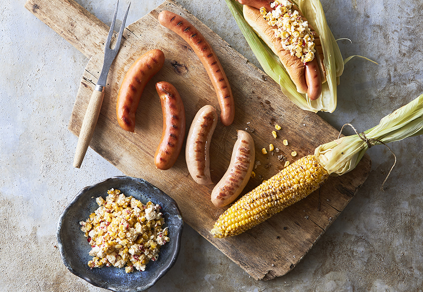 Leder du efter nemt og lækkert tilbehør til grillmaden? Prøv denne grillet majstopping med feta, persille og chili. En smagfuld topping, der passer perfekt til både hotdogs og grillpølser. De søde majs får en skøn ristet smag på grillen, som spiller perfekt sammen med cremet feta og et lille chilispark. Velbekomme.