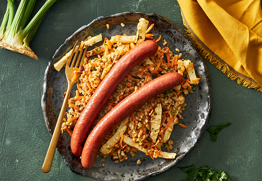 Efterårets rodfrugter er lækre ingredienser i din salat, vi har her garneret salaten med nødder og bagte knoldselleristave, der sammen med den syrlige dressing er virkelig lækker.