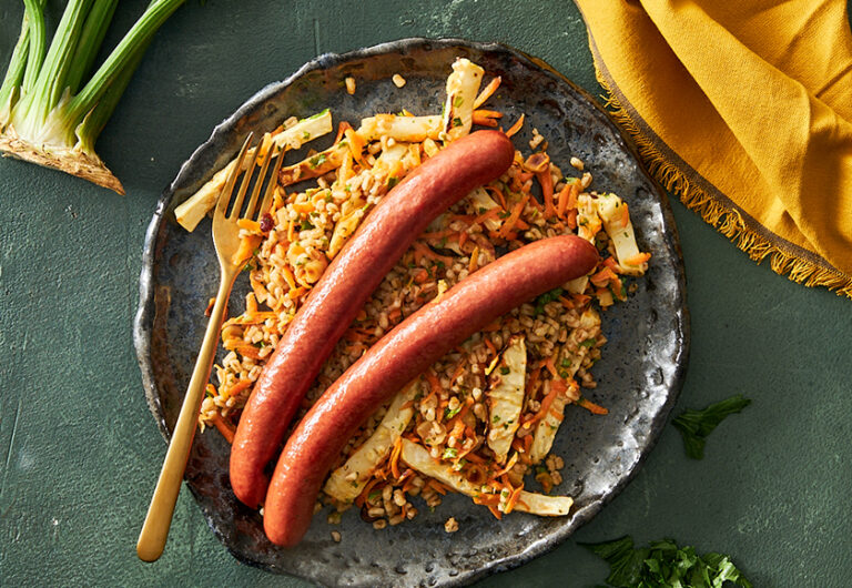 - Tilsæt resten af ingredienserne og server med kålpølser.