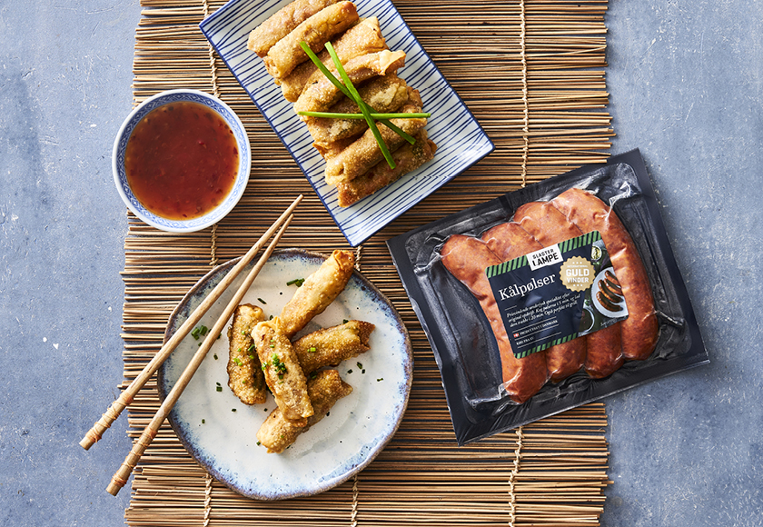 Asiatiske forårsruller med kålpølse er en spændende kombination af smage fra det nordiske og asiatiske køkken. De sprøde forårsruller med saftig kålpølse, sprøde grøntsager og frisk koriander giver en lækker balance mellem det salte og friske. Server med sød chilisauce for et ekstra pift.