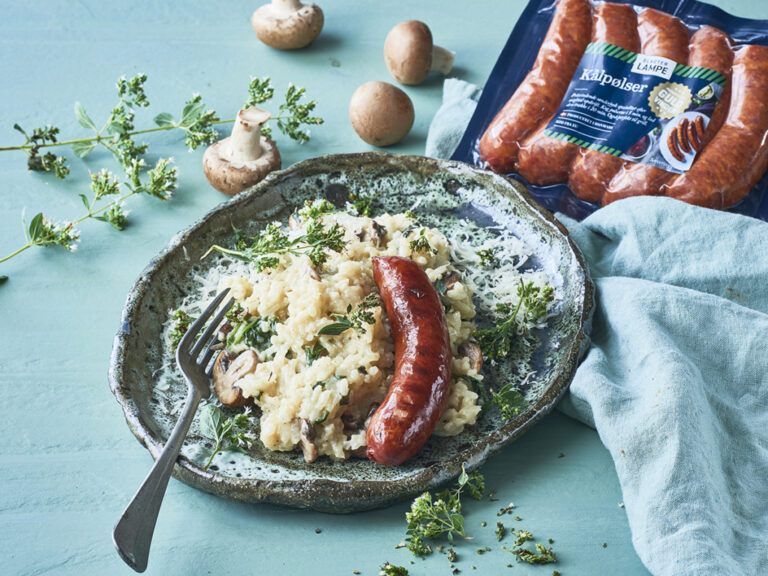 Kålpølsen består af kød og krydderier og har en skøn røget smag, der egner sig godt til kålretter. Her har vi lavet en skøn ret med den røde grønkål, der har fået et tvist med muskat og citron.