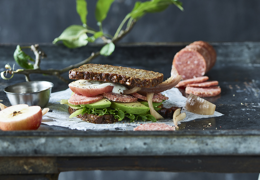 Sæsonens sprøde æbler er perfekte til at give friskhed og sødme til en rugbrødssandwich. I denne opskrift kombinerer vi cremet avocado, sprød salat og Sønderjysk Spegepølse med friske æblestykker og en lækker dressing. For et ekstra syrligt tvist kan du tilføje syltede løg, der giver sandwichen et dejligt pift.