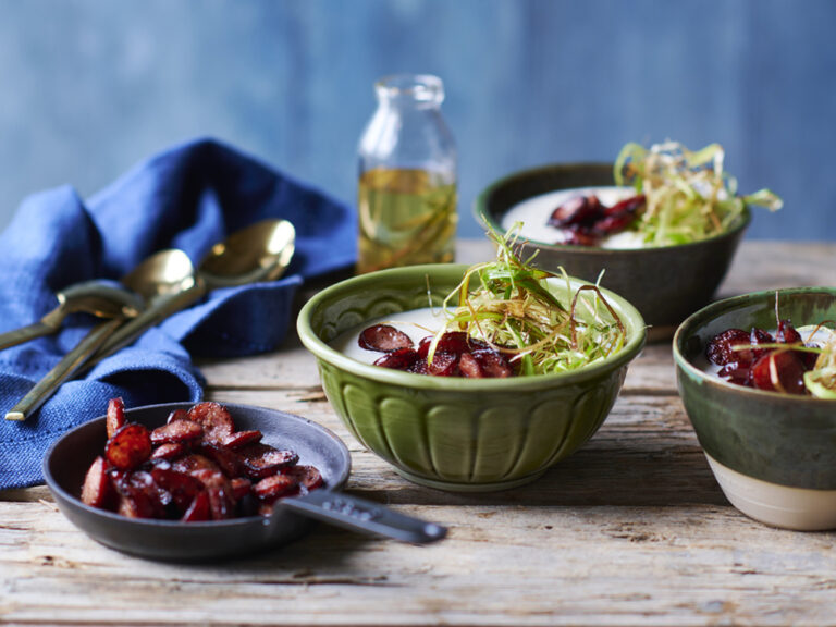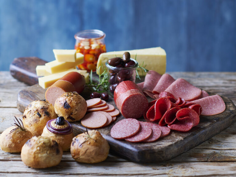 - Skær tapaspølse, spegepølse og løg i skiver.