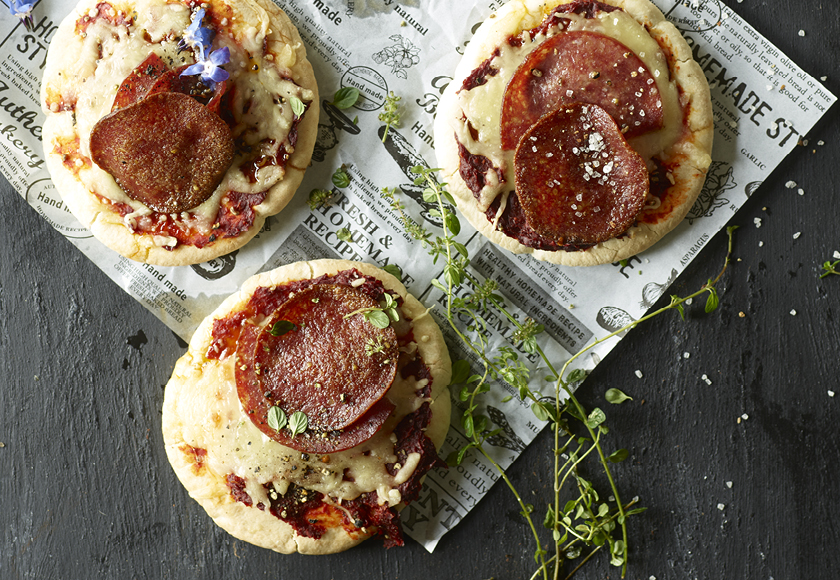 Nogle dage må det bare gerne gå hurtigt. Doven pizza er en genial løsning til travle hverdage eller hyggelig madlavning med børnene. Her bruger vi bløde pitabrød som pizzabund og topper med tomatsovs, ost og spegepølse - simpelt, nemt og virkelig lækkert. En ovnbagt spegepølse-pizza, som kan laves på under 20 minutter og smager skønt. Brug den også til madpakken eller en hurtig snack, når sulten melder sig.