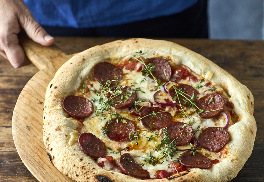 Pizza med gorgonzola og jalapeñosalami er en smagfuld og let krydret pizza, der kombinerer det cremede fra osten med det stærke fra salamien. En oplagt opskrift til dig, der gerne vil prøve en hjemmelavet pizza med lidt mere kant. Perfekt til både pizzaaften, gæstemad eller når du bare har lyst til en spicy pizza med masser af smag.