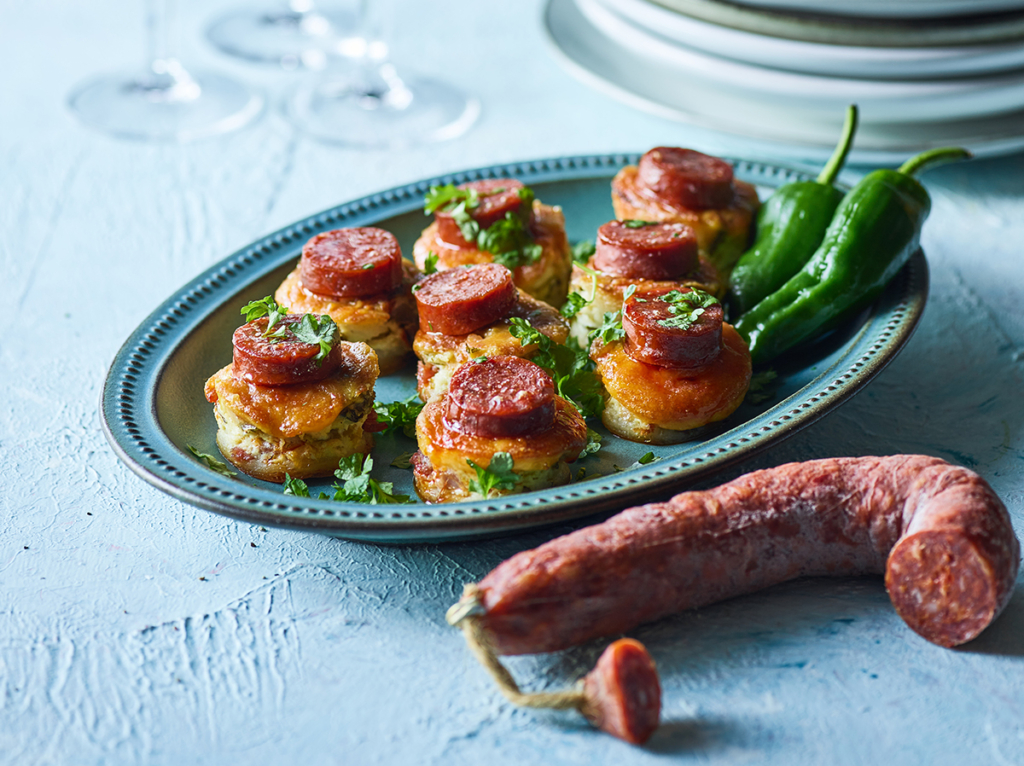 En lækker lun snack med æg og den krydrede chorizopølse på toppen. Perfekt til tapas, frokostbordet og brunch, når der skal kræses lidt ekstra for familien.