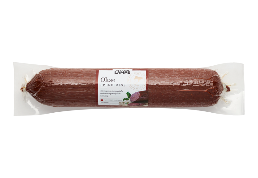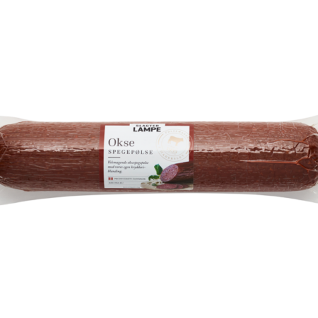 Vores velsmagende Oksespegepølse er fremstillet af udvalgt oksekød og vores egen krydderiblanding. Nyd pølsens fyldige smag med friskrevet peberrod, avocado eller syltede agurker.