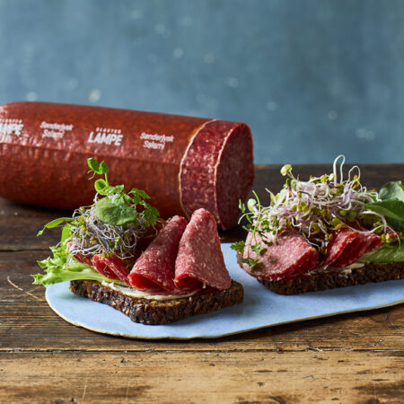 Klassisk sønderjysk salami i slagterkvalitet med god aromatisk smag. Salamien er lavet af udvalgt kød fra gris og røget med bøgeflis. Perfekt til frokostbordet og madpakken.