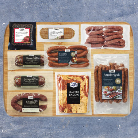 Vi har samlet alt, du skal bruge til fredagshygge i ægte slagterkvalitet. Pakken indeholder 12 stk. Grillpølser og 16 stk. Sønderjyske grillpølser til hotdogs, 400 G Tørsaltet bacon, 175 G Tapas Chorizopølse, 1 stk. Tapas Fennikelsalami, 1 stk. Tapas Jalapeñosalami og 4 stk. Kålpølser til pizza, 1 stk. Røget mørbrad til en lækker snack og 500 G Chorizo brunchpølser.